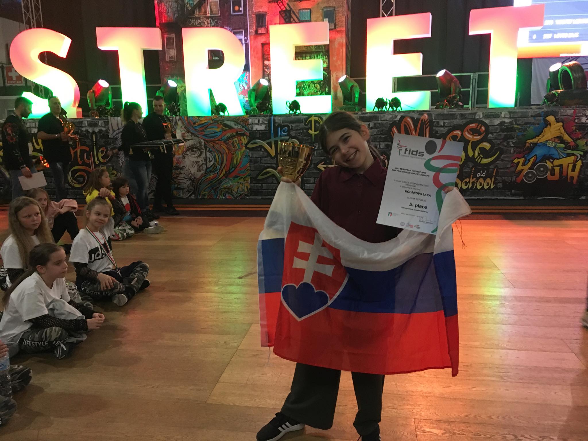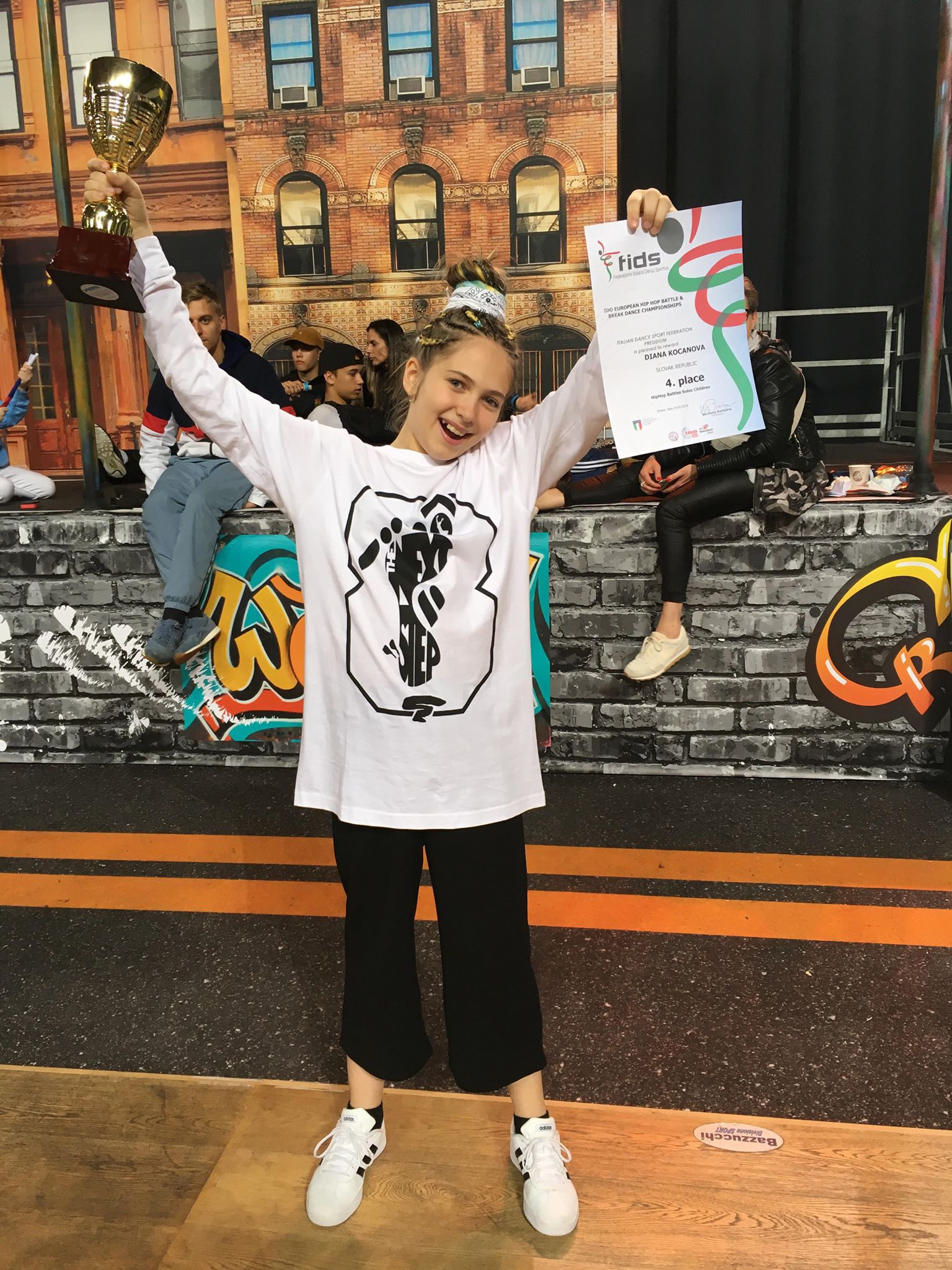 V prvý deň sa zadarilo najmladšej iba 8 ročnej sólistke Lare Kočanovej, ktorá sa zo 118tich dievčať prebojovala do finále a získala 5 miesto. V kategórii all style battle sólo sa zo 68mich detí do semifinále prebojovala Diana Kočanová, ktorá napokon získala 4. miesto. Prvenstvo, a teda titul Majstra Európy si dievčatá Diana a Lara Kočanové, Natália Kováčová, Natália Gaži a sestry Sára a Nellka Kertésové vybojovali v kategórii all style battle crew pod vedením trénerky Diany Stredňákovej.
