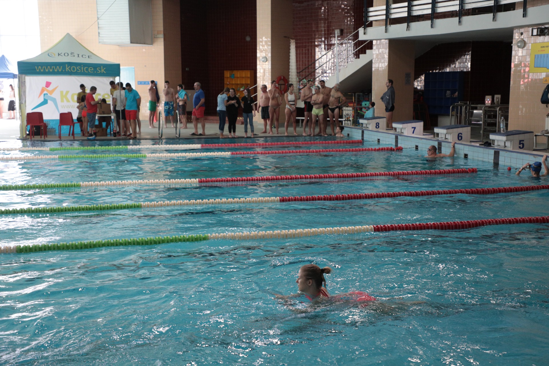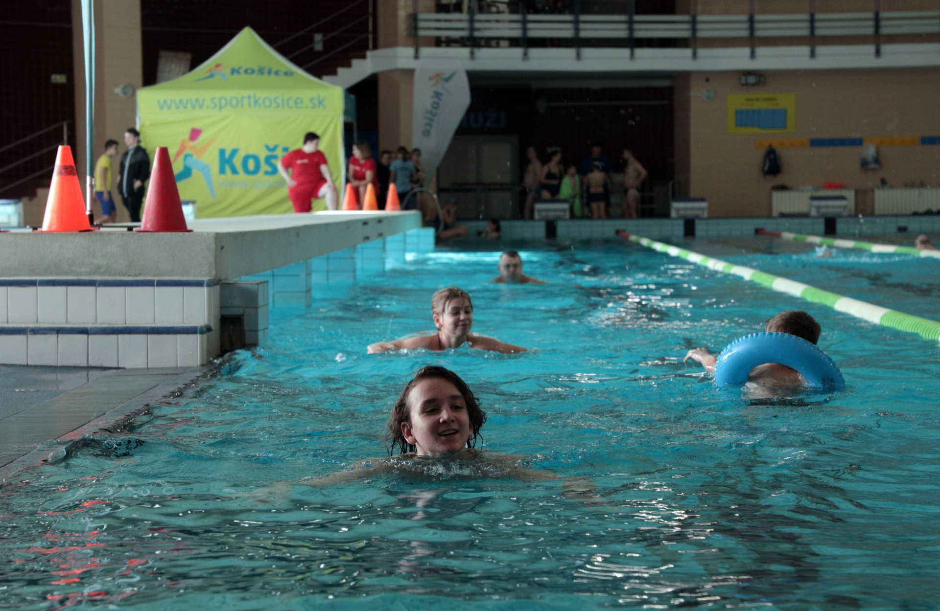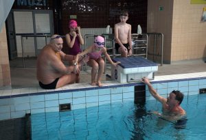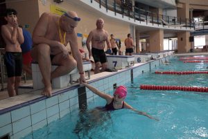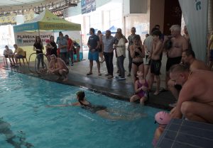 V bazéne sa za prvú hodinu vystriedalo približne 70 plavcov všetkých vekových kategórií.