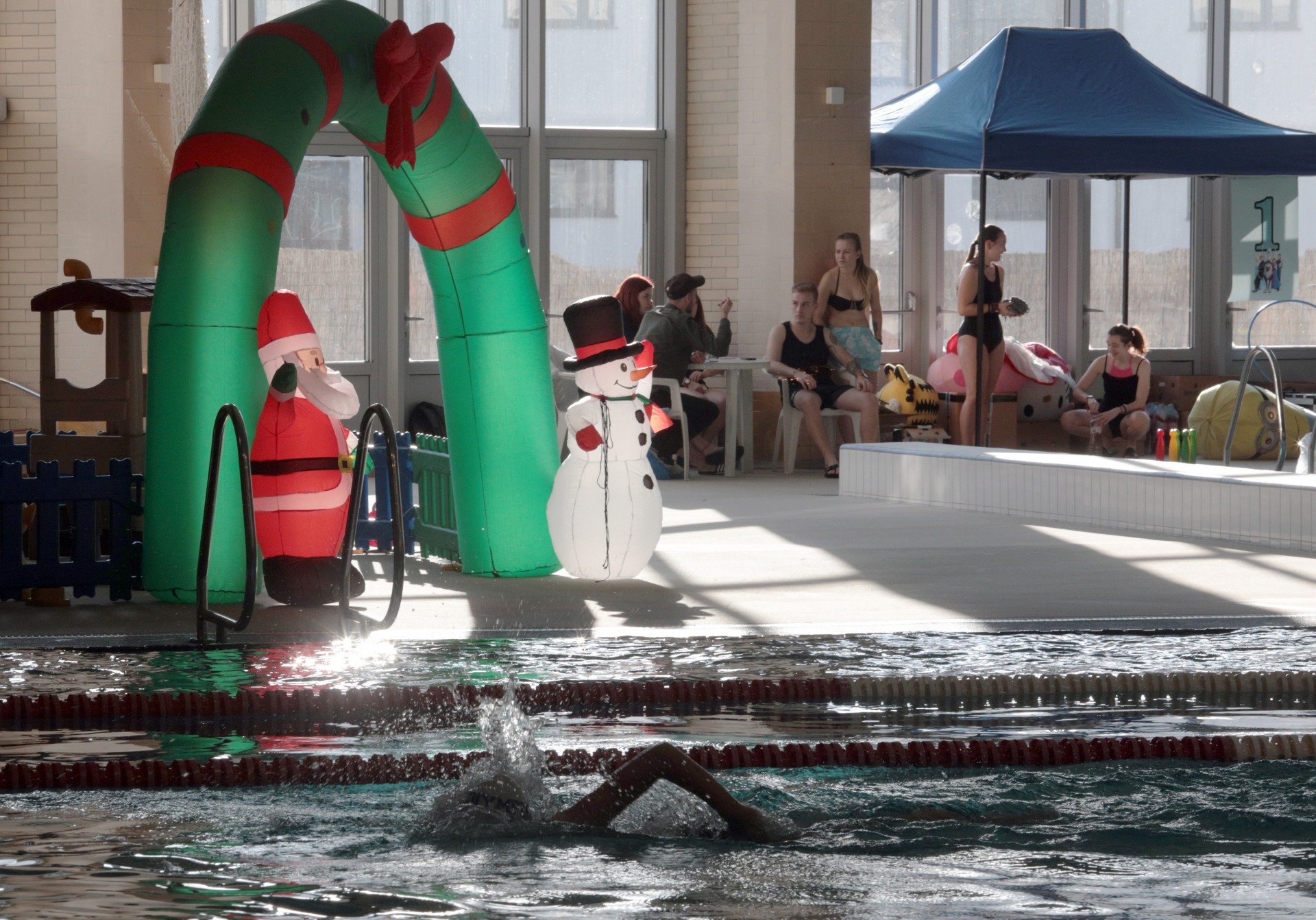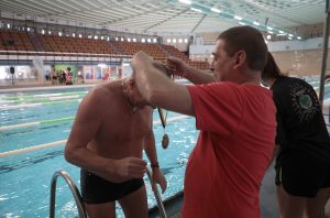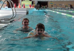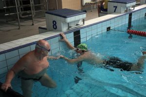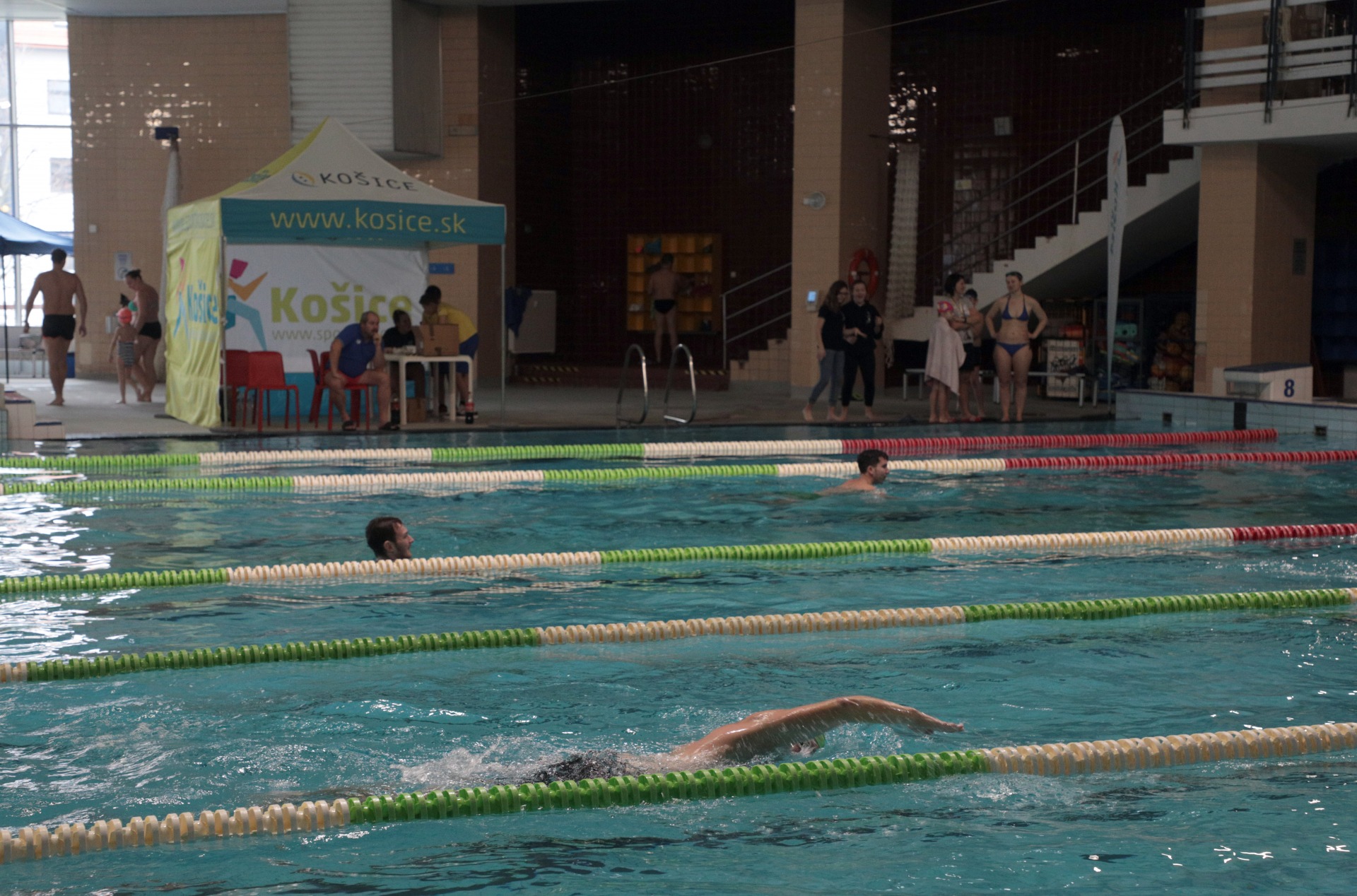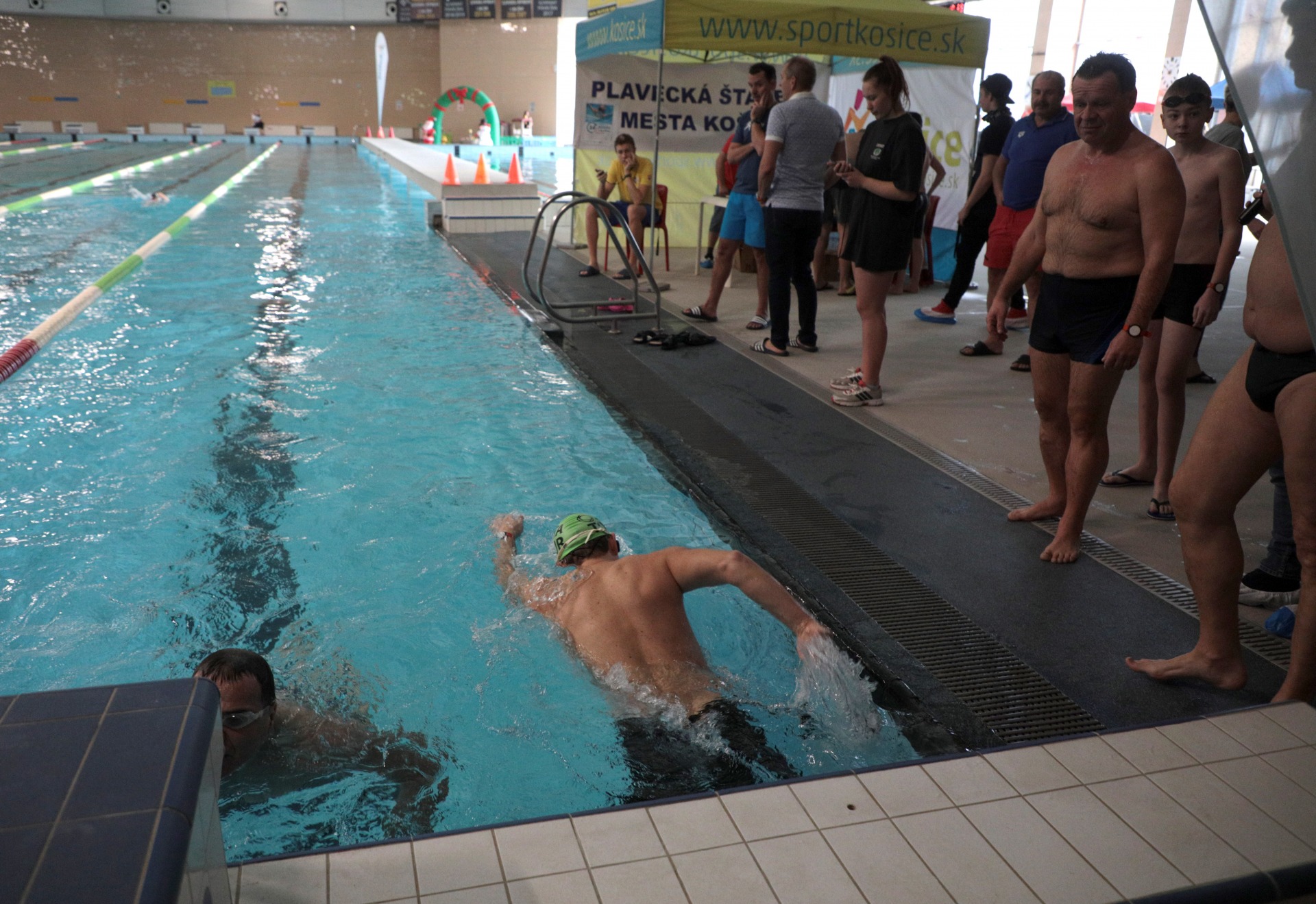 V bazéne sa za prvú hodinu vystriedalo približne 70 plavcov všetkých vekových kategórií.