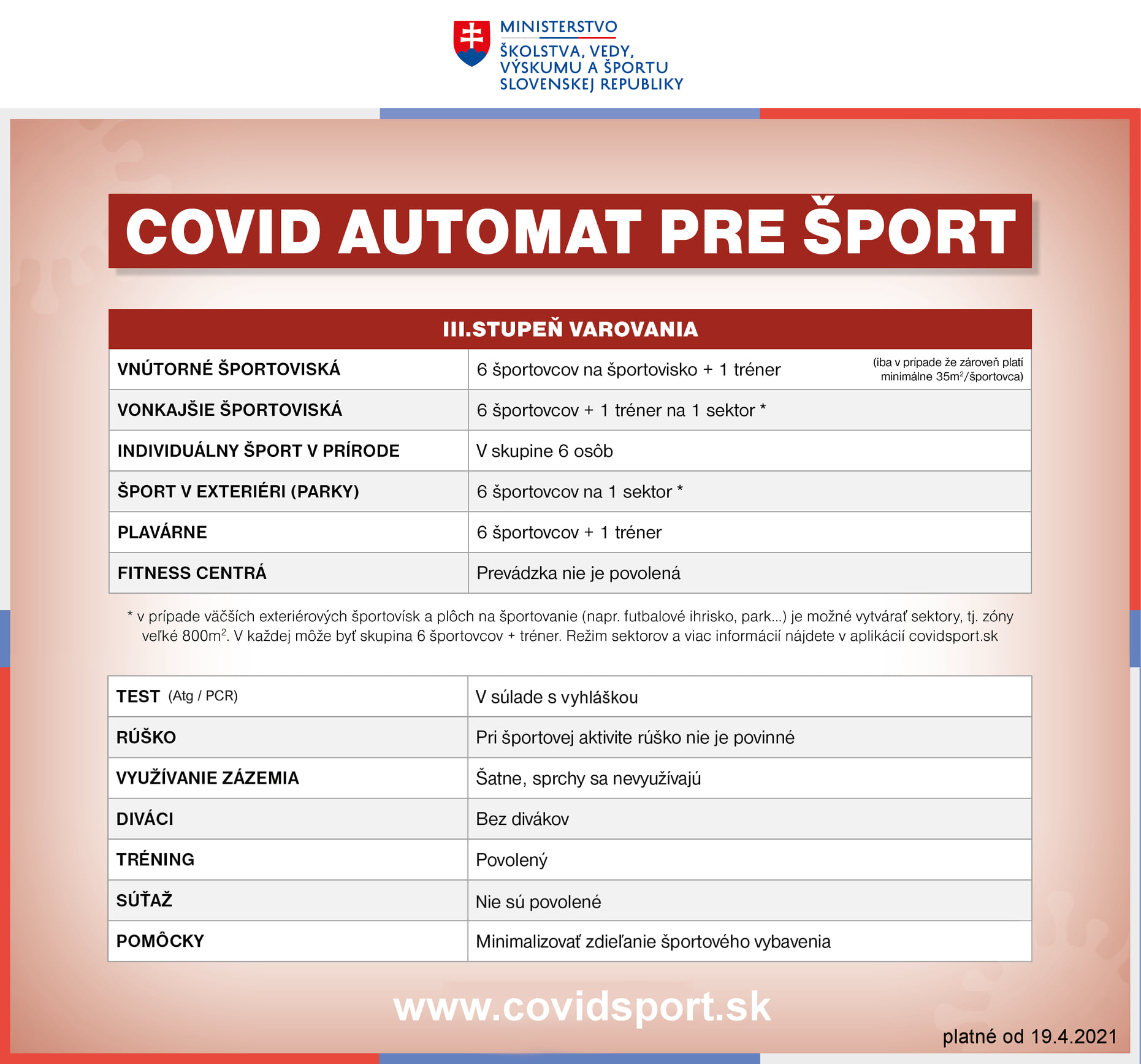 Ak by ste náhodou ešte nevedeli, nech sa páči, informácie ohľadom opatrení v športe platné od 19.4.2021 a aktualizovaná...