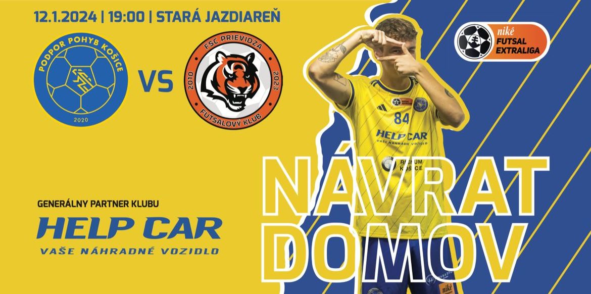 💛💙 Po necelých dvoch rokoch sa opäť predstavíme na domácej palubovke v Košiciach. V rámci 11. kola NIKÉ FUTSAL EXTRALIGY nastúpime v šlágri kola proti aktuálne druhému tímu v tabuľke FSC Prievidza.