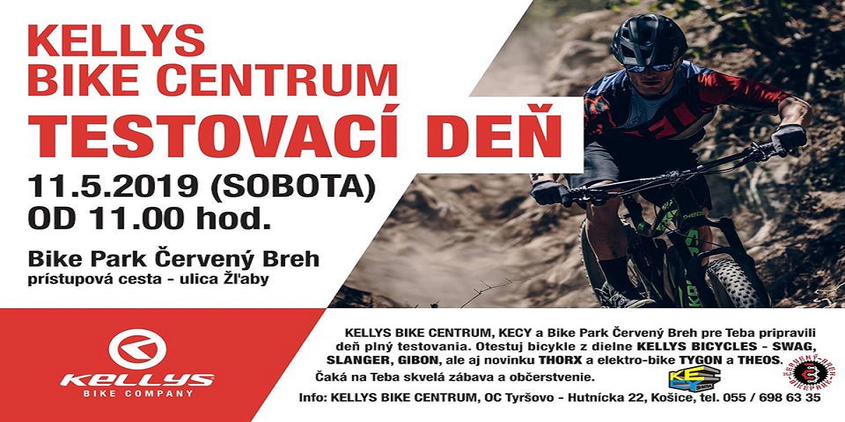 KELLYS BIKE CENTRUM,KECY a Bike Park Červený Breh pre Teba pripravili deň plný testovania. Otestuj bicykle z dielne KELLYS BICYCLES - SWAG,SLANGER,GIBON aj novinku THORX a elektro-bike TYGON a THEOS.