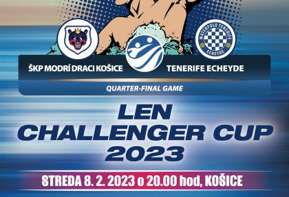 Už v stredu 8. februára o 20. hodine odohrajú Modrí Draci odvetu štvrťfinále európskej klubovej súťaže LEN Challenger Cup proti španielskemu klubu Tenerife Echeyde.