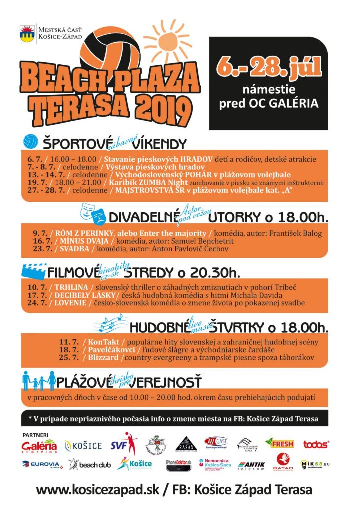 Kompletný program tohto letného projektu „Beach Plaza Terasa“ nájdete na webe www.kosicezapad.sk alebo na FB : Košice Západ Terasa.