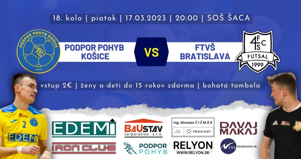 Zápas sa uskutoční v telocvični SOŠ Šaca v piatok 17. marca o 𝟮𝟬:𝟬𝟬.