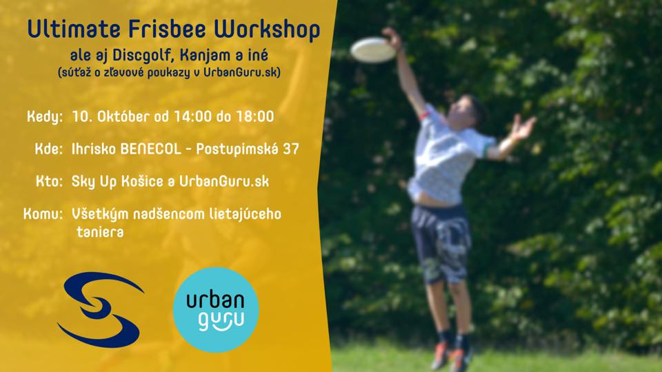 Sky Up Košice organizuje už druhý ultimate frisbee workshop, no prvý svojho druhu. Príďte si vyskúšať kolektívny, férový a hlavne zábavný šport ultimate frisbee - kolektívna hra s lietajúcim tanierom. Čaká vás sprievodný program ako rôzne súťaže, ale aj športy ako discgolf, kanjam, spikeball, limitovaná ponuka profesionálnych lietajúcich tanierov a kopec ďalšieho. Program je vhodný aj pre rodiny s deťmi, jednoducho pre každého.