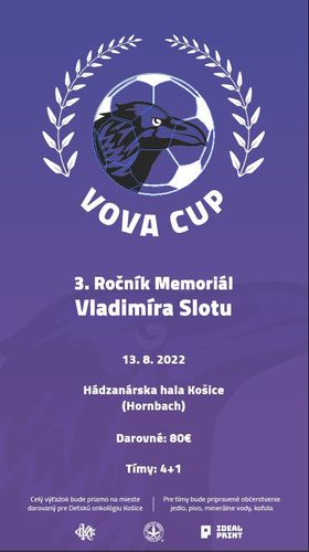Pozývame vás na 3 . ročník Futsalového turnaja VOVA CUP (memoriál Vladimíra Slotu ) ktorý sa uskutoční dňa 13.8 v hádzanárskej hale v Košiciach . Hrať sa bude podľa fustalovych pravidiel vo formáte 4+1 . Počet tímov je limitovaný . 🙏🏻⚽️ REGISTRÁCIA :FB : Berlo Perlo email : perloberlovsky@gmail.com
